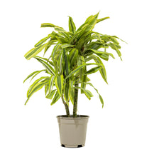 Dracaena Lemon is a colorful indoor plant with bright green leaves highlighted by yellow edges. It brings a fresh, vibrant look to indoor spaces.